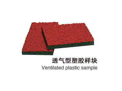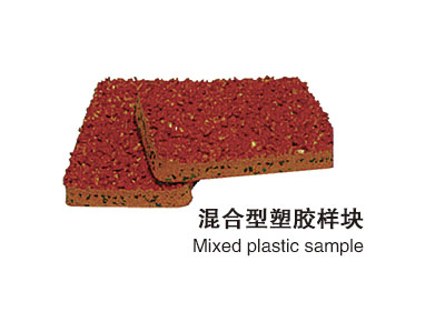混合型塑膠跑道樣塊透氣型塑膠跑道:是聚氨酯單組份膠水混合黑色橡膠粒攤鋪后,表面采用膠粒EPDM或PU顆粒與純聚氨酯粘結劑攪勻噴涂;顏色分為鐵紅、草綠,也可根據用戶需要調節。